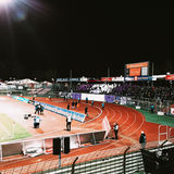 Its multi-use design means that there is a distinct feel of it being more like an athletics stadium rather than a football ground. A neat and tidy 2,000 seater covered main stand runs along the western side of the ground and the remaining sides of the oval shaped ground offer low concrete terraces open to the elements - which was a concern on our visit as the skies above Cologne darkened with rain clouds. The away support can be found at the north end of the ground and Fortuna's most vocal support congregate on the southern Kurve although this is currently closed and the club have announced that it will only be reopened if demand requires it. In the meantime the Fortuna ultras will have to sing their lullabies from the terrace (Mitte) opposite the main stand. A well maintained synthetic athletics track around the perimeter sets the ends behind the goal a fair distance from the action and four towering floodlights standing sentry in each corner completes the look of the stadium.